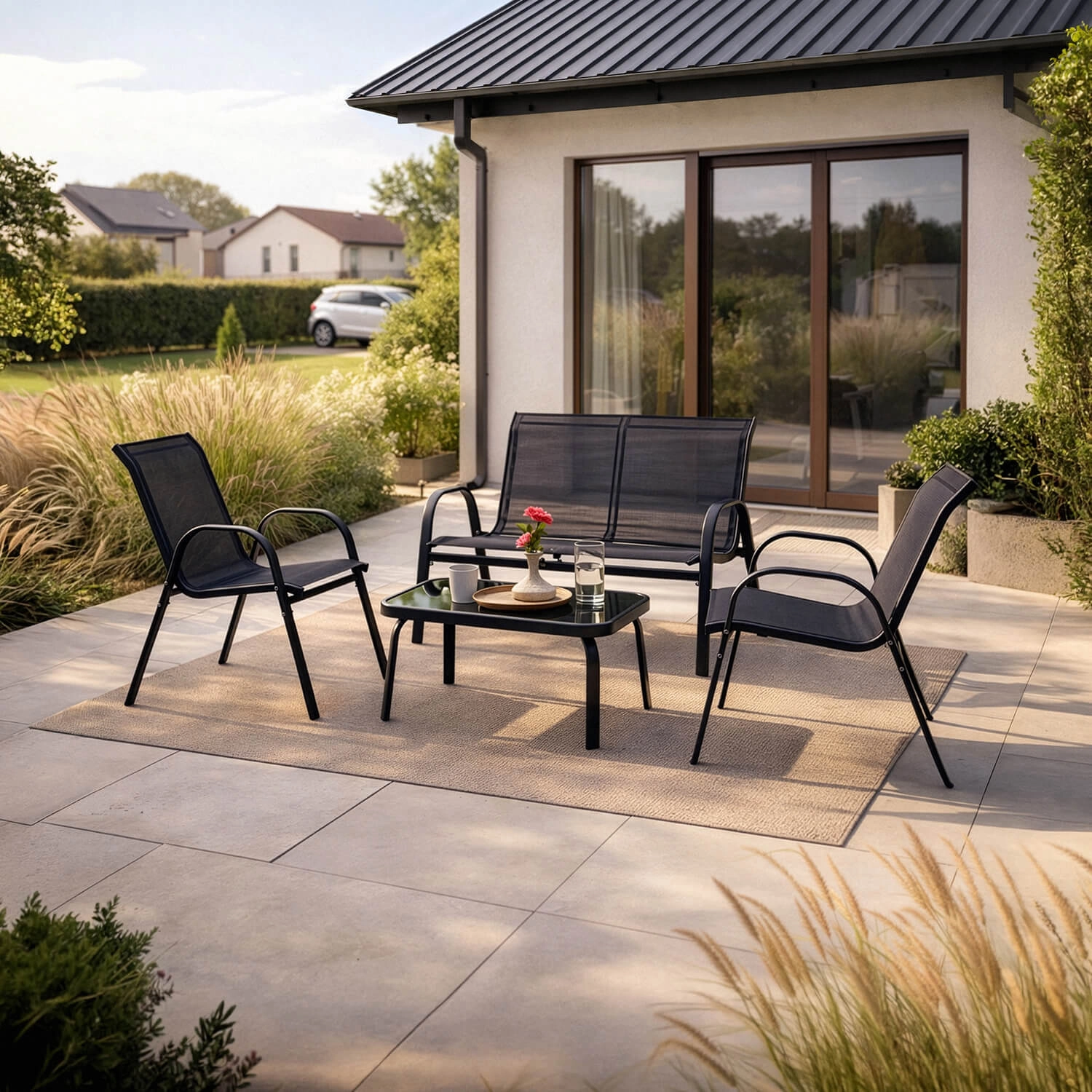 Zestaw Mebli Ogrodowych 4 osobowy Loft Czarny